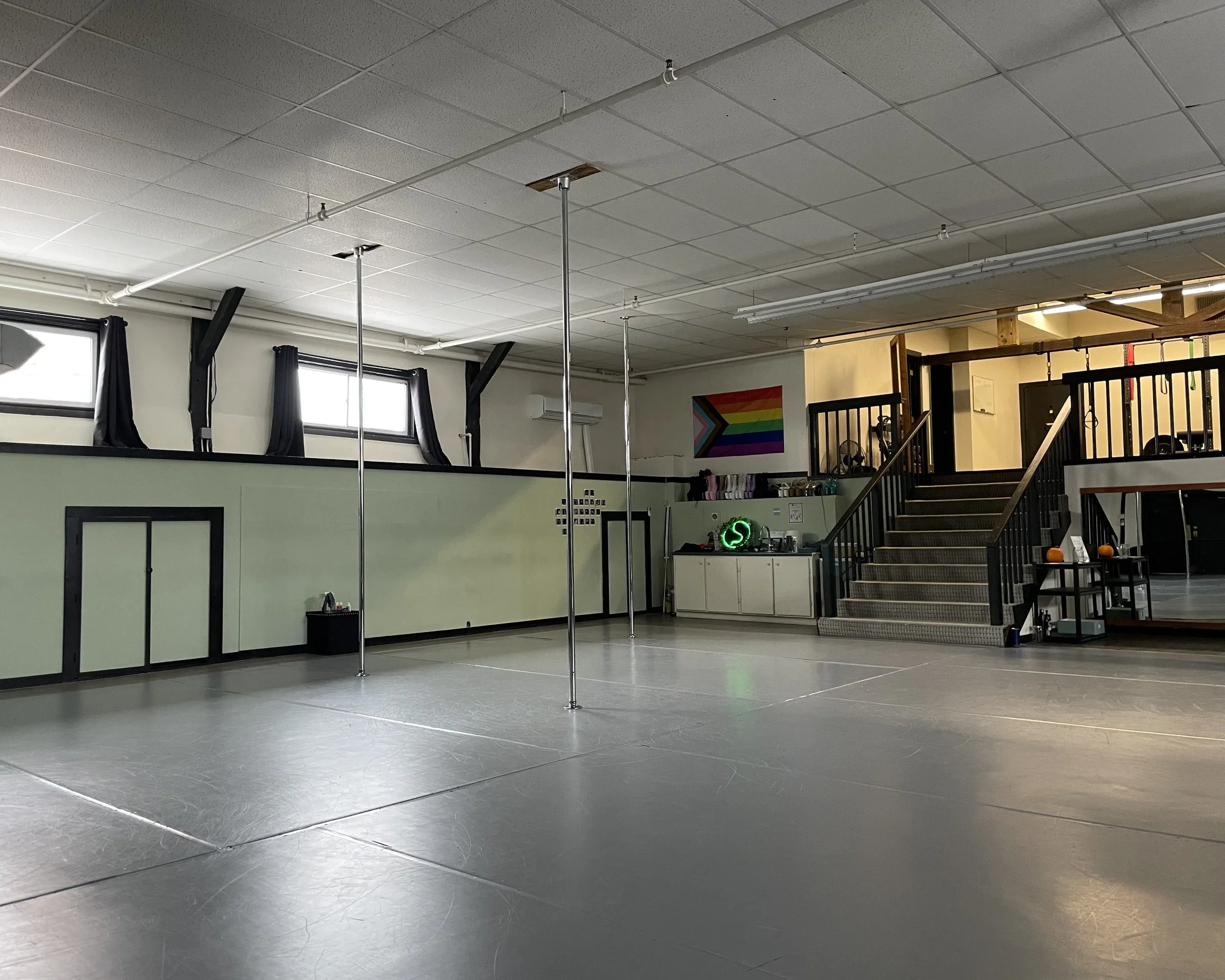 We also hold regular studio showcases, contemporary dance performances, Queer Strip Nites, and other community events at the studio. We strive to cultivate a welcoming, inclusive space where folks can experience excellent training in a supportive environment. Come as you are! It’s fun here.